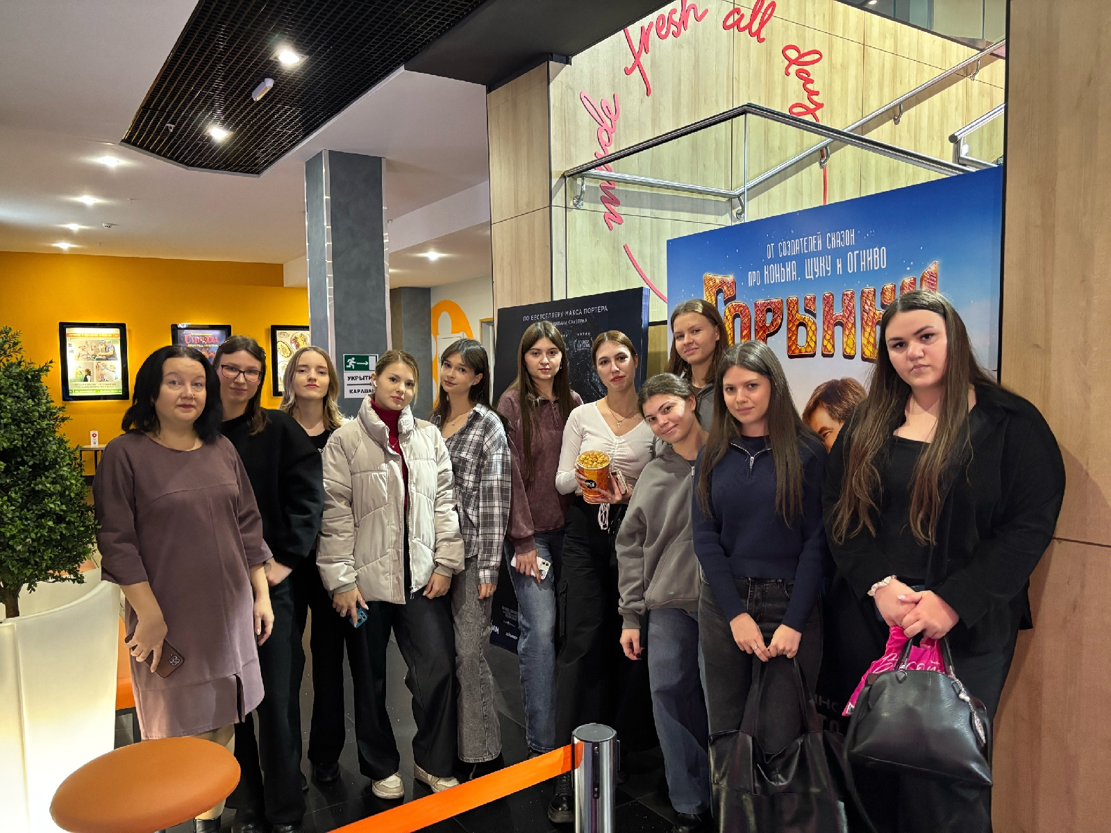17 ноября 2025 г. на кураторском часе студенты группы 24НПД1 вместе с куратором М.В. Сычёвой посетили кинотеатр «Высшая лига». Студенты с удовольствием посмотрели фильм «Яга на нашу голову». Билеты были приобретены по Пушкинской карте.